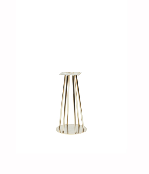 Messinkinen kauniisti muotoiltu pöydänjalka soveltuu esimerkiksi kahvila-, ravintola- ja hotellikäyttöön.