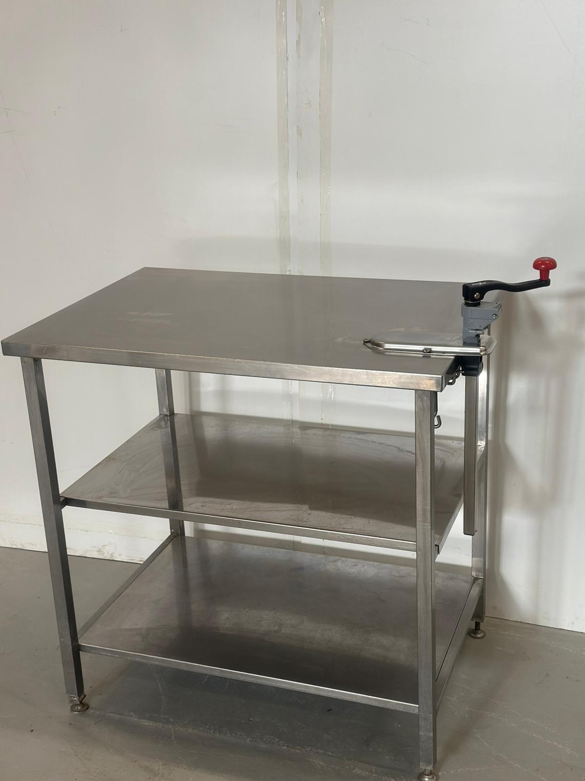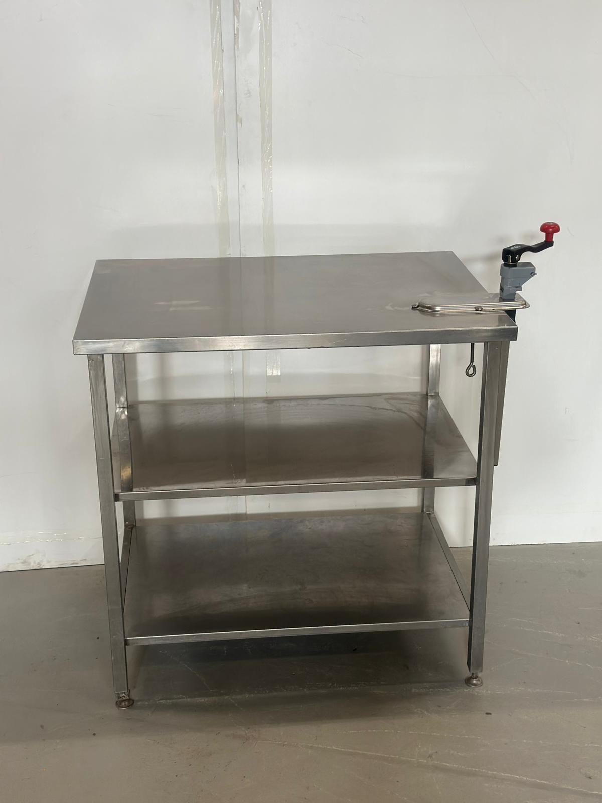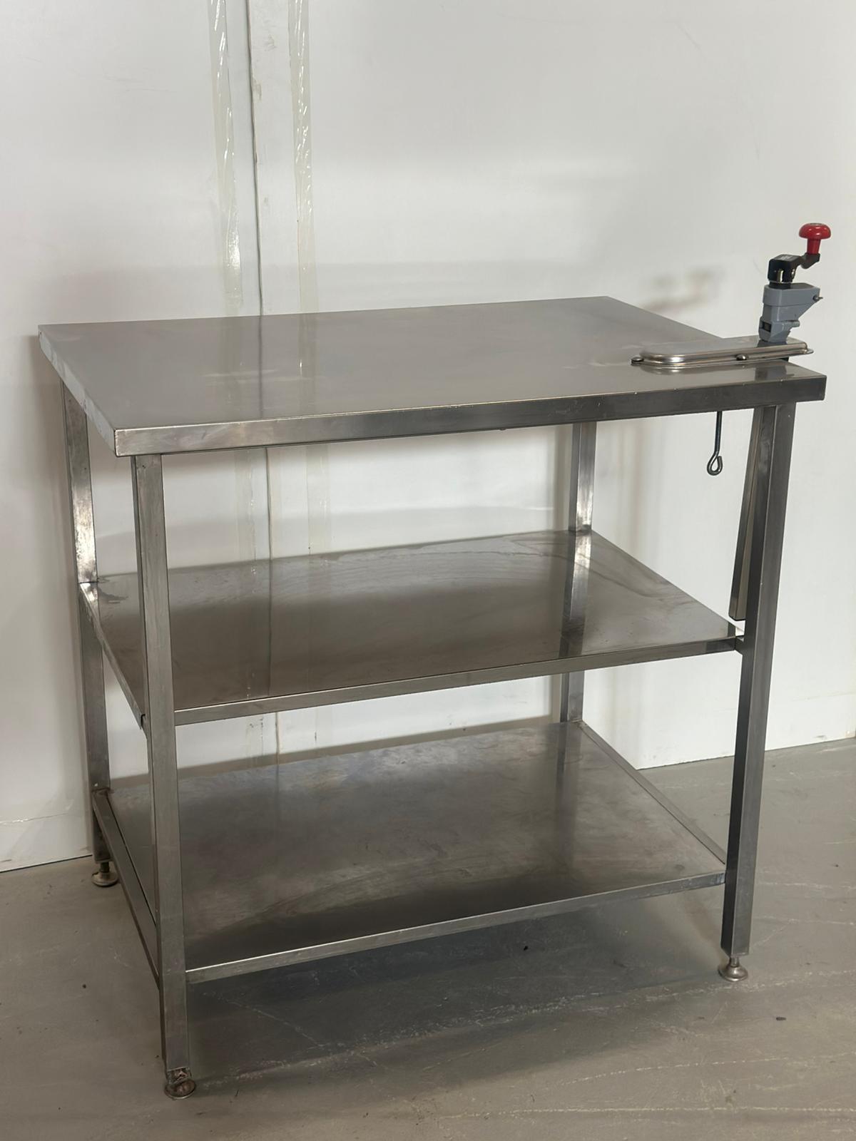 Kuvan mukainen siistikuntoinen rst-pöytä kahdella hyllyllä.