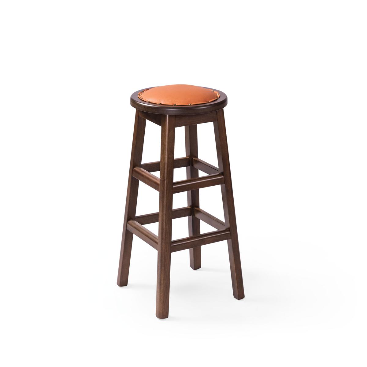 Toro on laadukas massiivipuusta valmistettu baarijakkara oranssilla pehmusteella.
