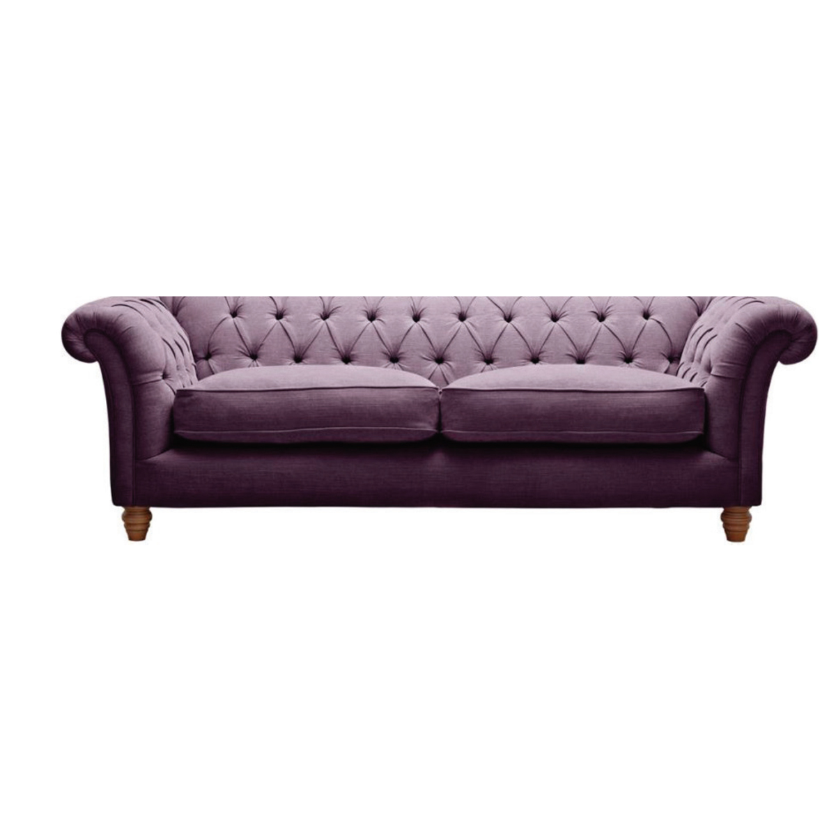 Bella on klassinen Chesterfield-sohva, jossa on laadukas liila verhoilu.
