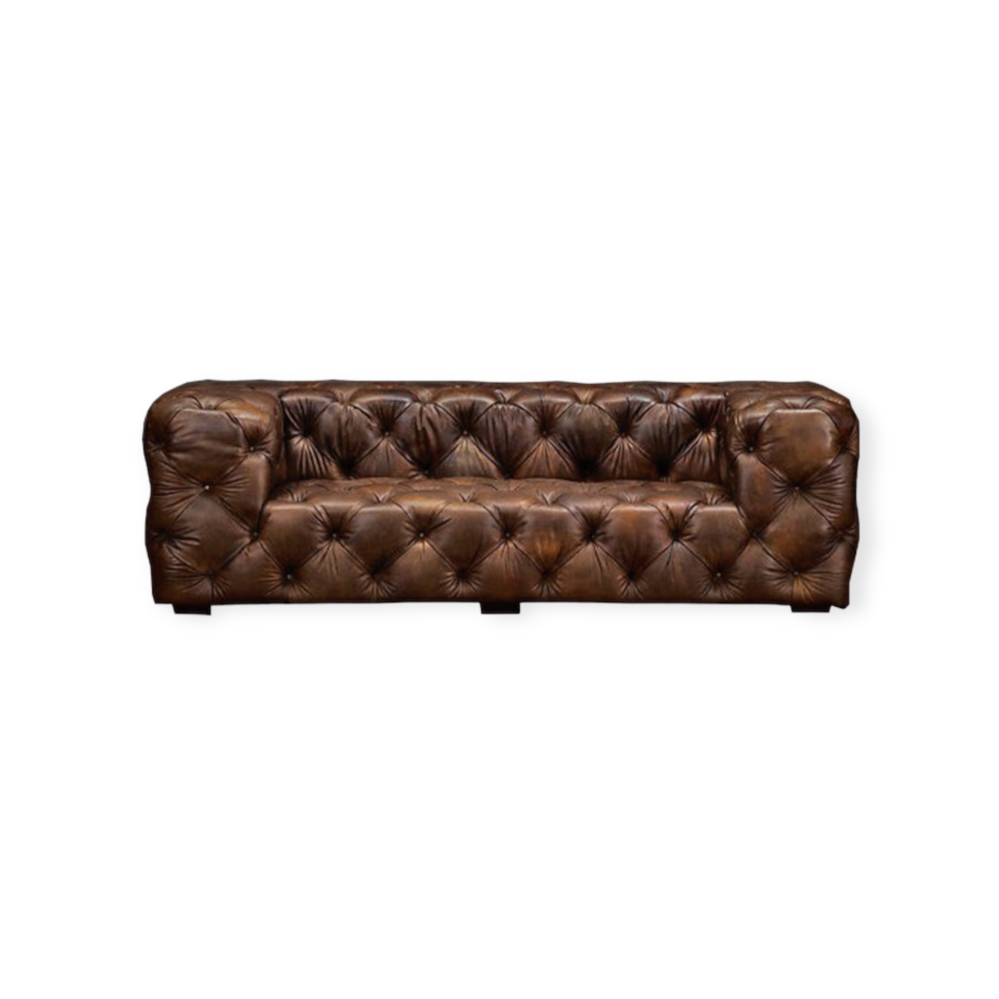 Jykevä Chesterfield-sohva King on valmistettu laadukkaasta pyökkipuusta ja verhoiltu miellyttävällä nupukkinahalla.