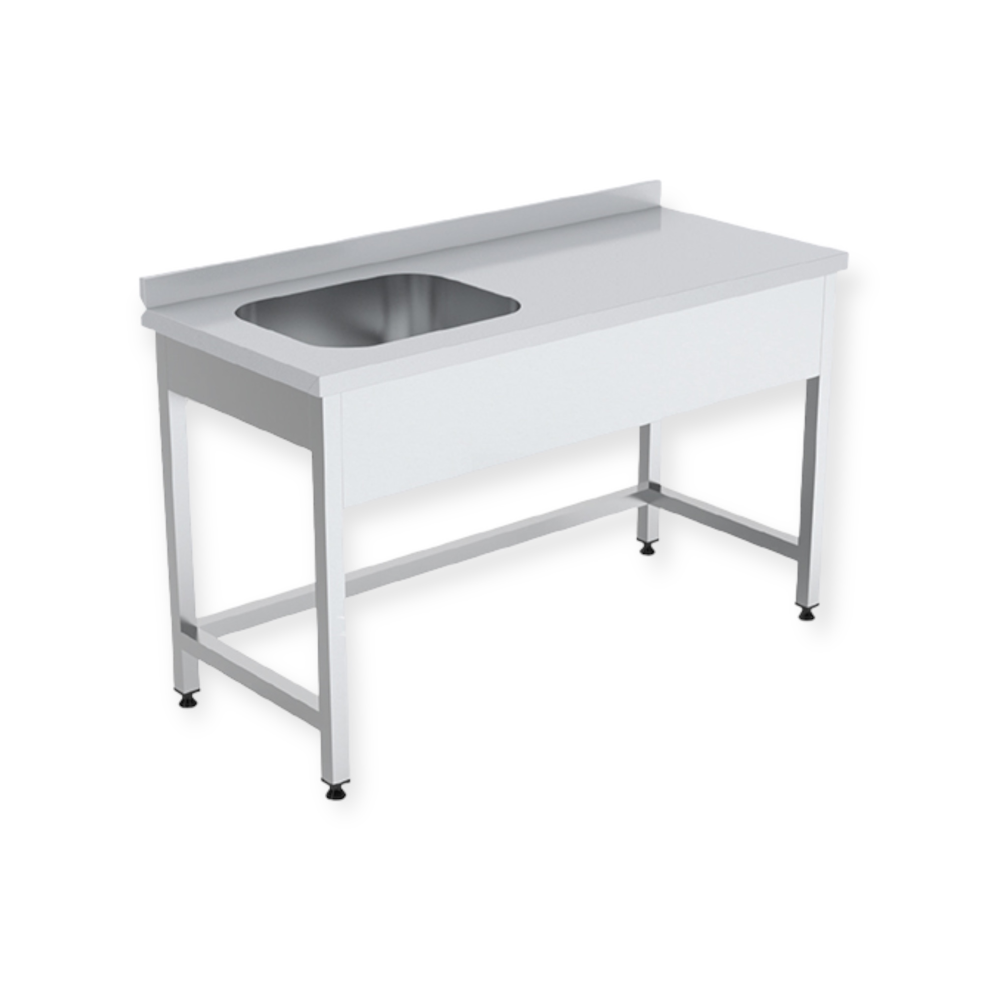 RST-pöytä pesualtaalla. Allas vasemmalla.