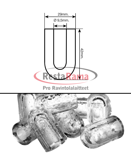 ”Ylimitoitetut” kylmäkomponentit vähentävät myös koneikon käyntiaikoja ja pidentävät siten sen käyttöikää olennaisesti. Euroice-jääpalakoneet tuottavat virheettömiä jääpaloja pitkään. Jääpalat ovat tyylikkäitä kuutioita, painoltaan 22 g. Ne säilyttävät muotonsa hyvin ja näyttävät houkuttelevilta tarjoiltavassa juomassa. Laite on varustettu kiinteällä jääpalasäiliöllä.
