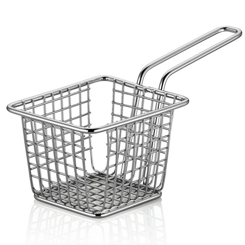 Suorakulmio frittikori ruostumattomasta teräksestä valmistettu runko, kahvalla