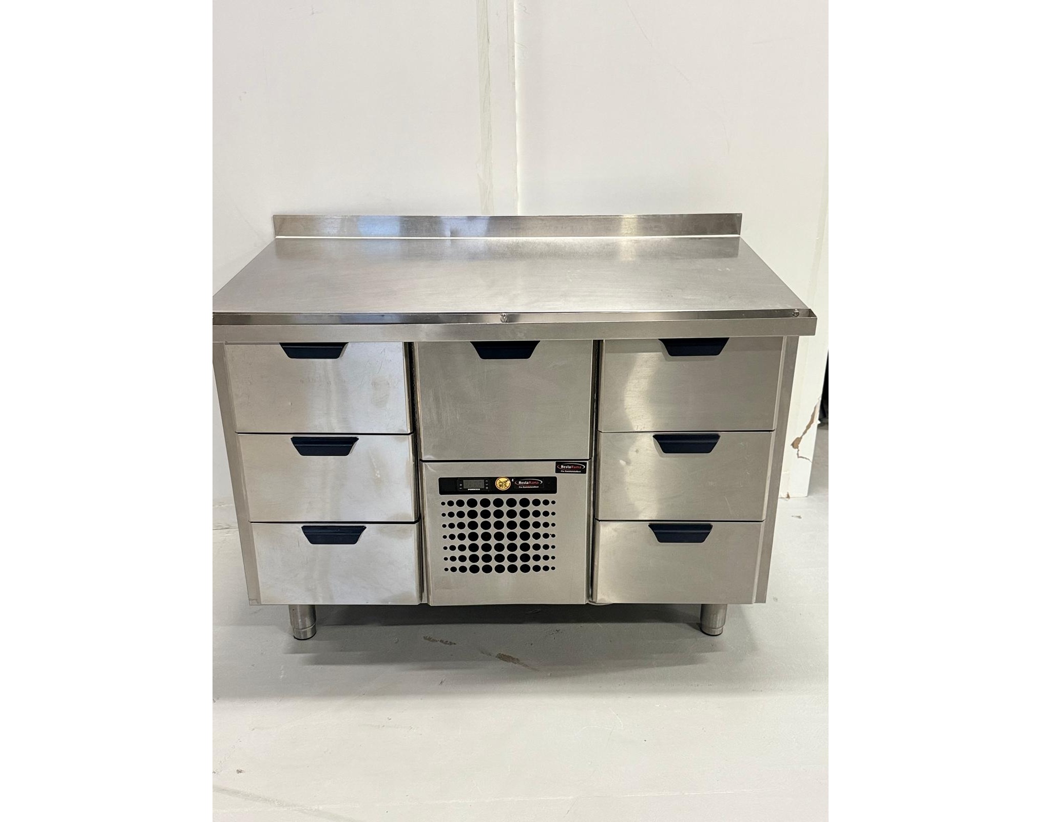 Laatikosto toimii myös pizzapöytänä, edessä jauhekouru.