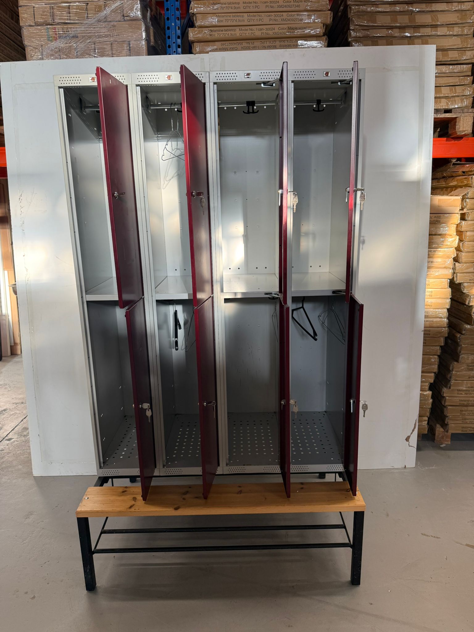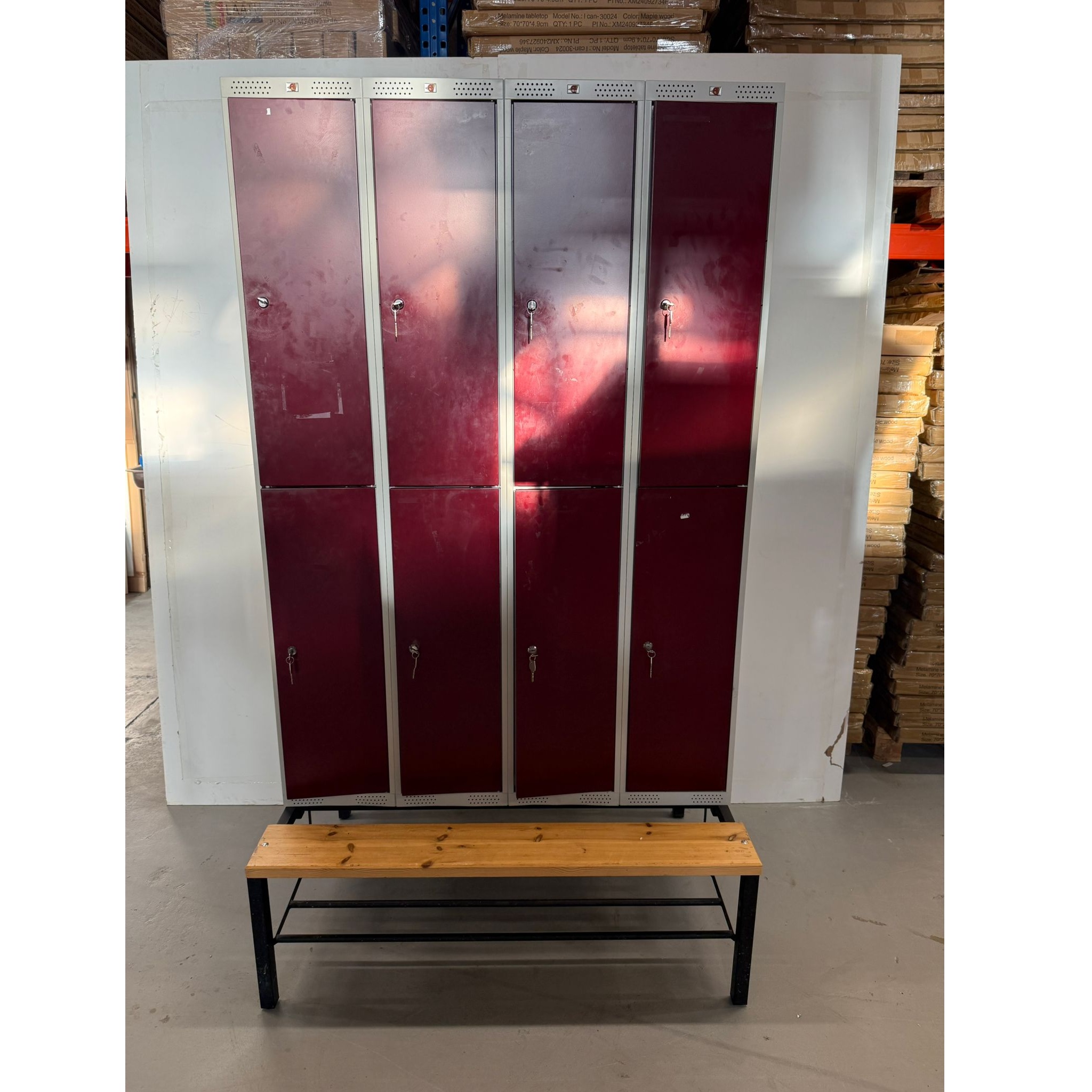 Edessä penkki, kaapin takana tuuletusaukot.