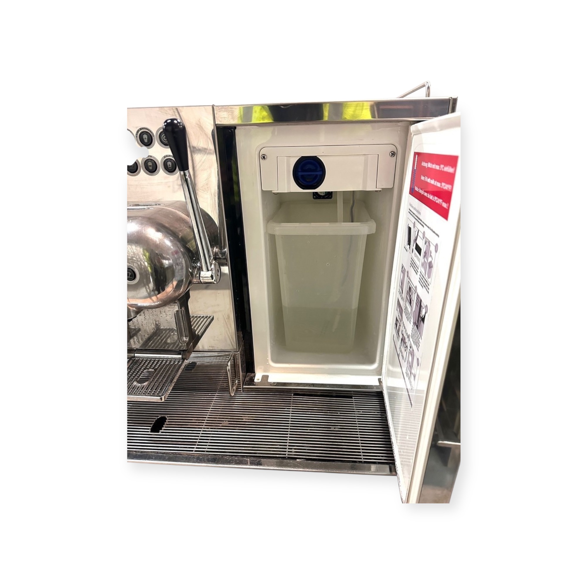 -Sisäänrakennettu jääkaappi viidelle maitolitralle.