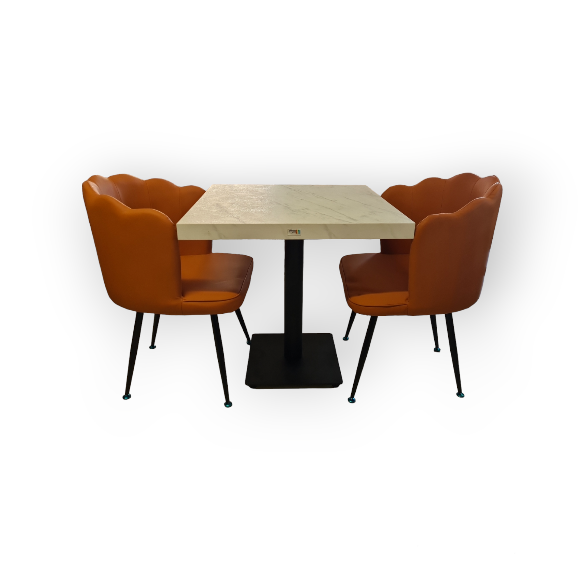 Kielo on ravintola tuoli, jonka viimeistelee kaunis metalli runko ja konjakin värinen keinonahka verhoilu.