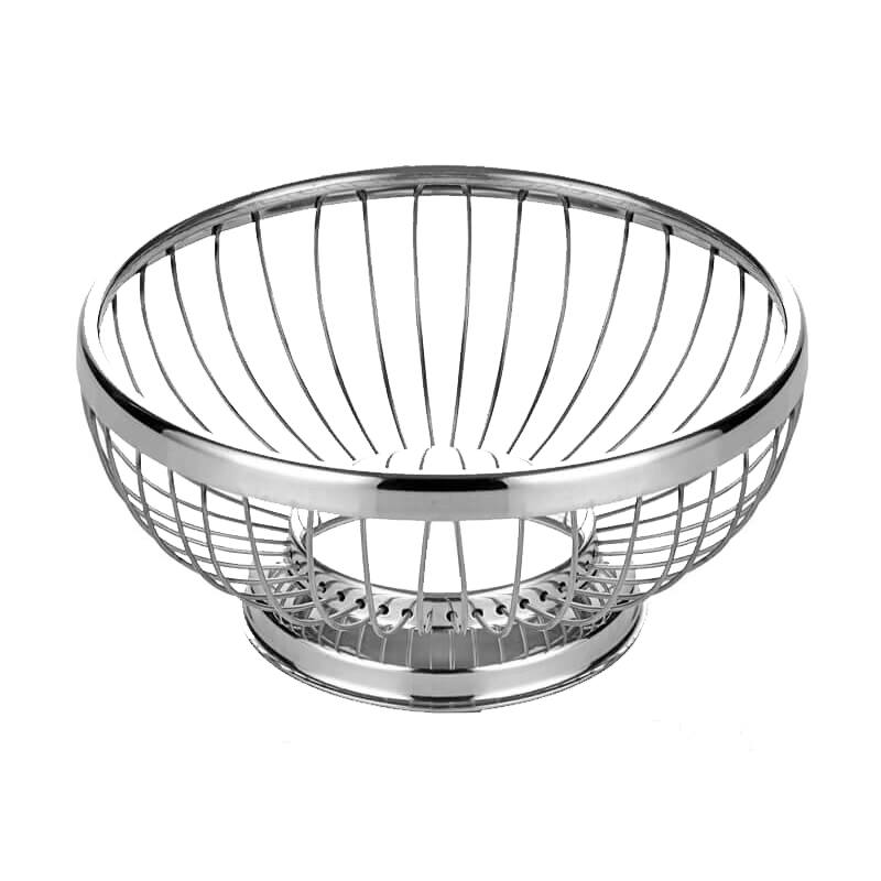 Pyöreä, leipä- ja hedelmäkori on valmistettu ruostumattomasta teräksestä ja runko on peilikiillotettu. Pinottava. Konepesun kestävä.
