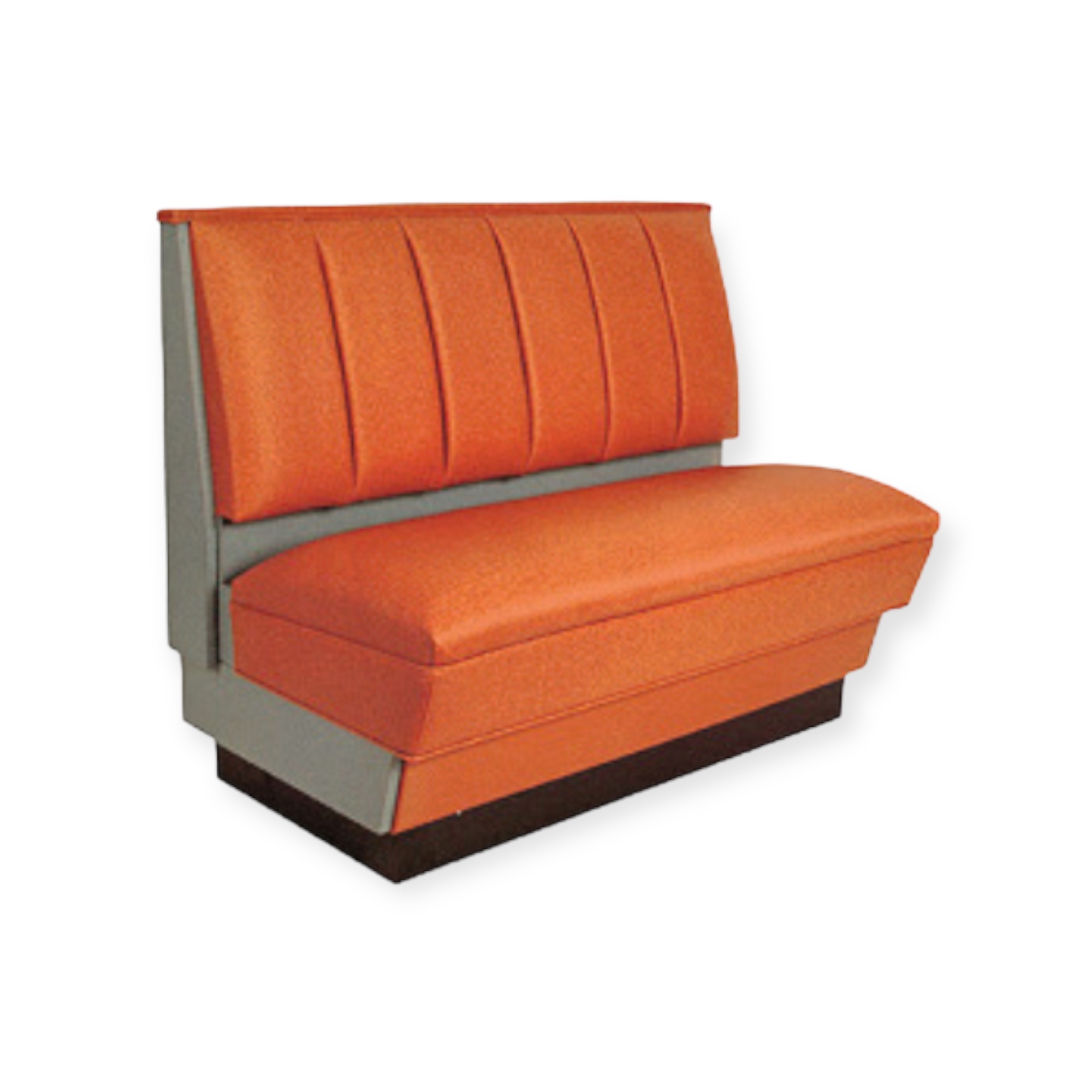 Sohvaon verhoiltu laadukkaalla oranssilla keinonahalla, joka on muotoiltu selkänojasta.