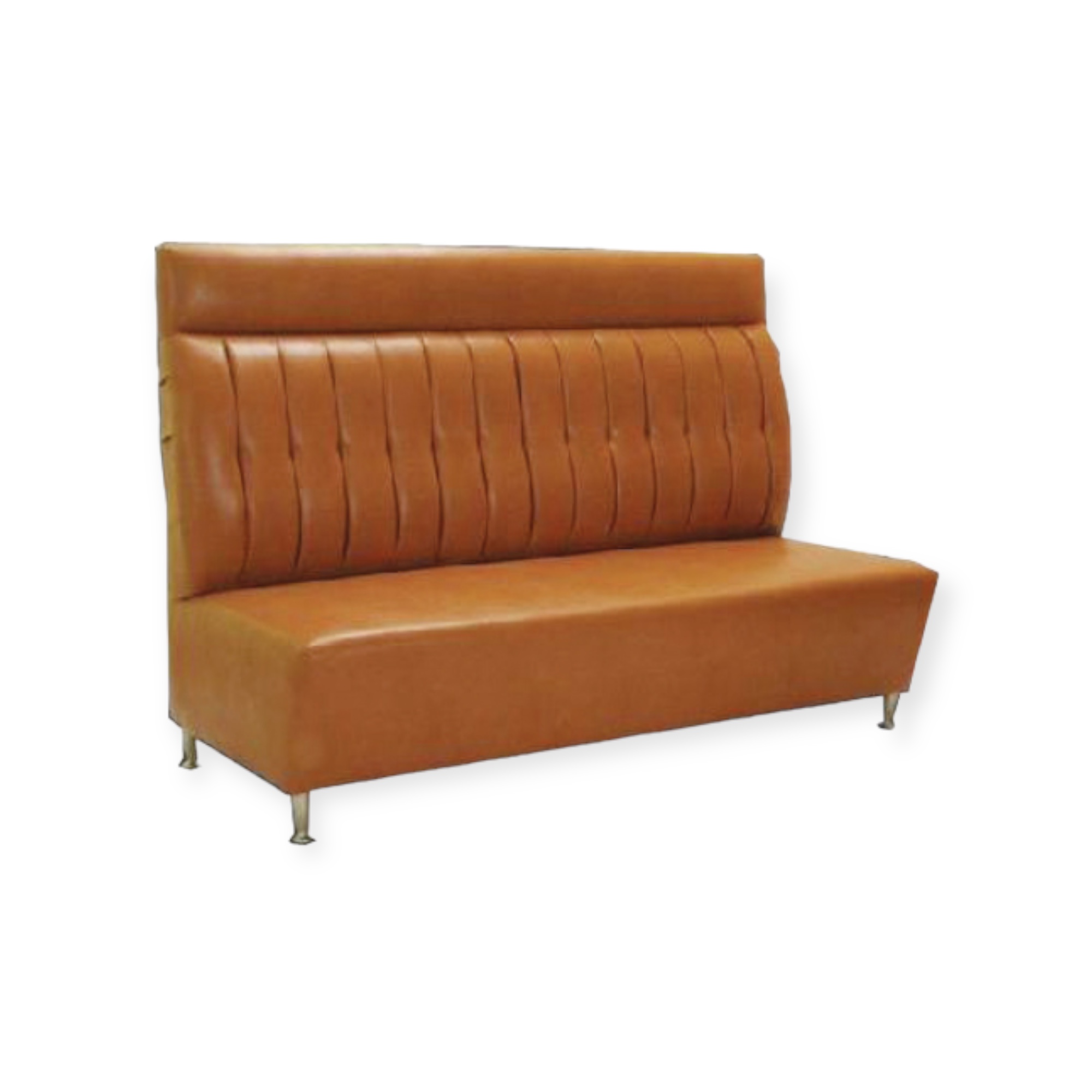 Kahden istuttava loosisohva Shine on verhoiltu oranssilla keinonahalla, joka on muotoiltu selkänojasta.