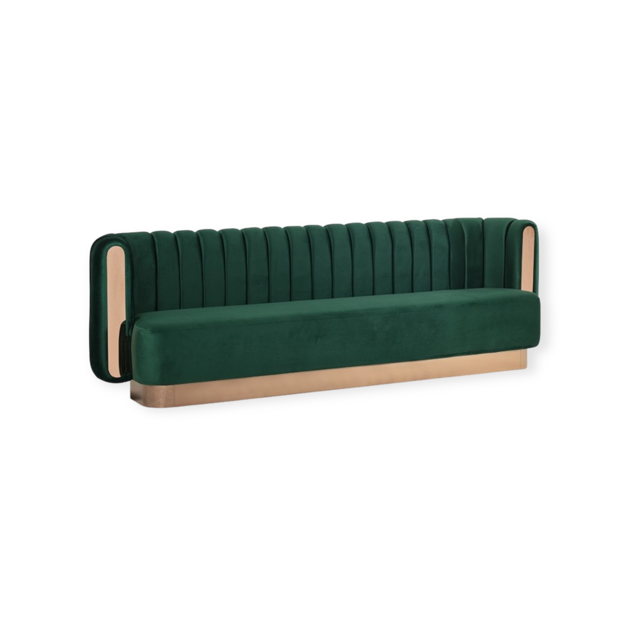 Bozzano S on verhoiltu smaragdinvihreällä kankaalla, joka on muotoiltu selkänojasta.