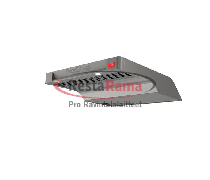 Huuvassa tehosäädettävä poistoimuri ja valaistus (suunniteltu erityisesti suodattamaan pizzan haju liiketilan sisätiloista)