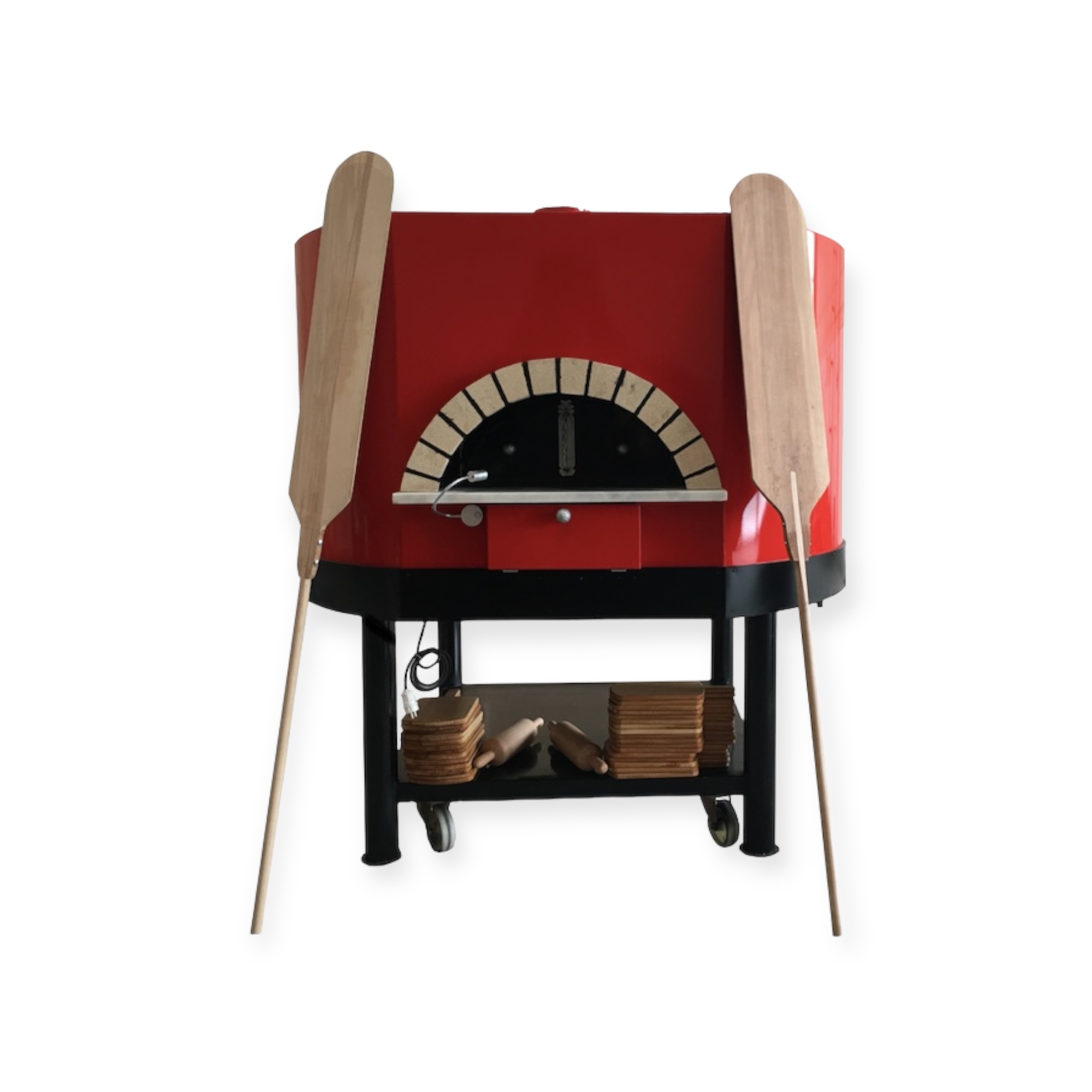 Näyttävä elävän tulen kaasulämmitteinen pizzauuni 8 pizzalle. Saatavilla myös puulämmitteisenä. Kiviuunilla voidaan yltää 100 pizzan tuntikapasiteettiin.
