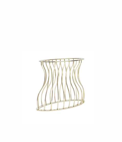 Messinkinen kehikkomaisesti muotoiltu pöydänjalka.