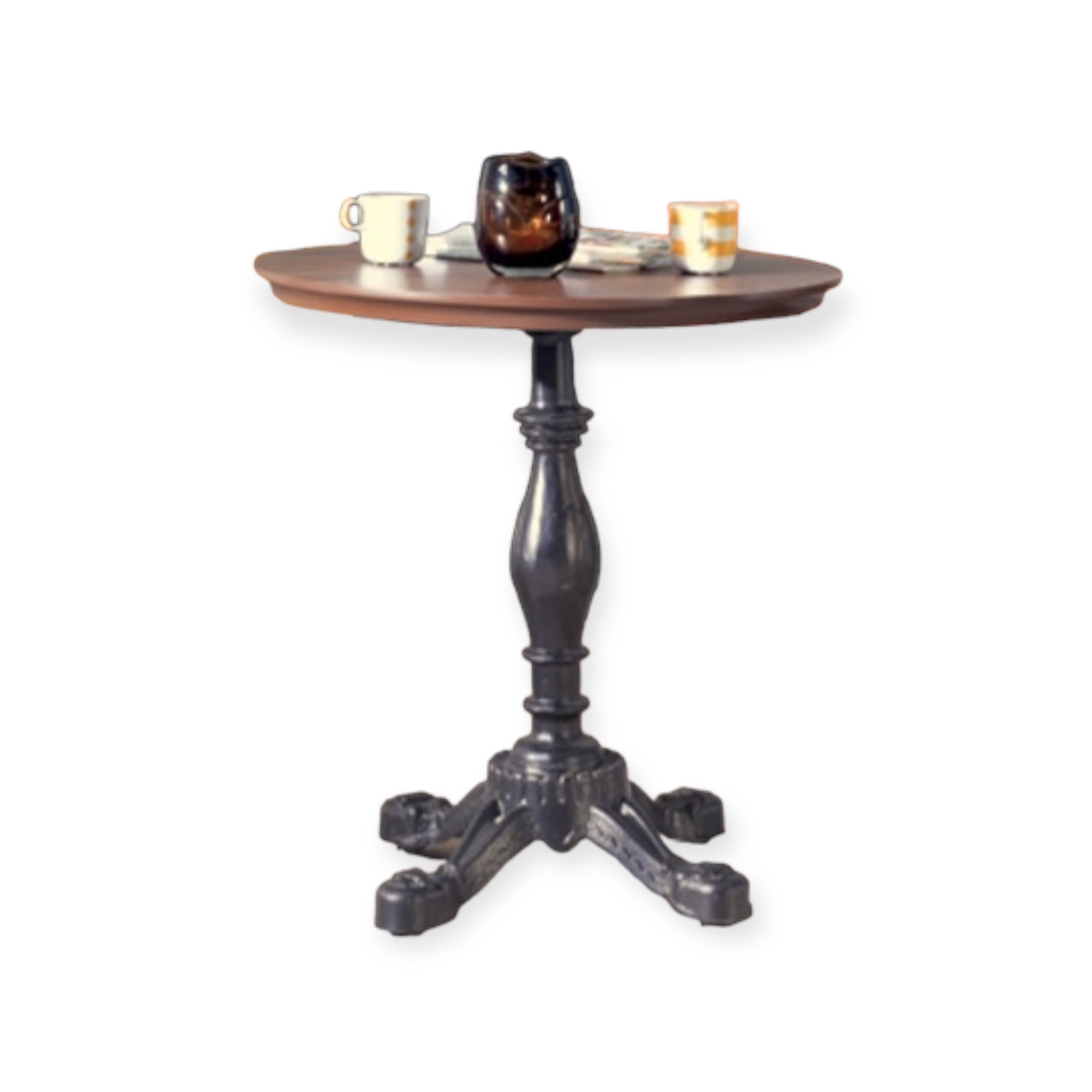 Laadukkaasta pyökkipuusta valmistettu pöytä, jota kannattelee koristeellinen valurautajalka.
