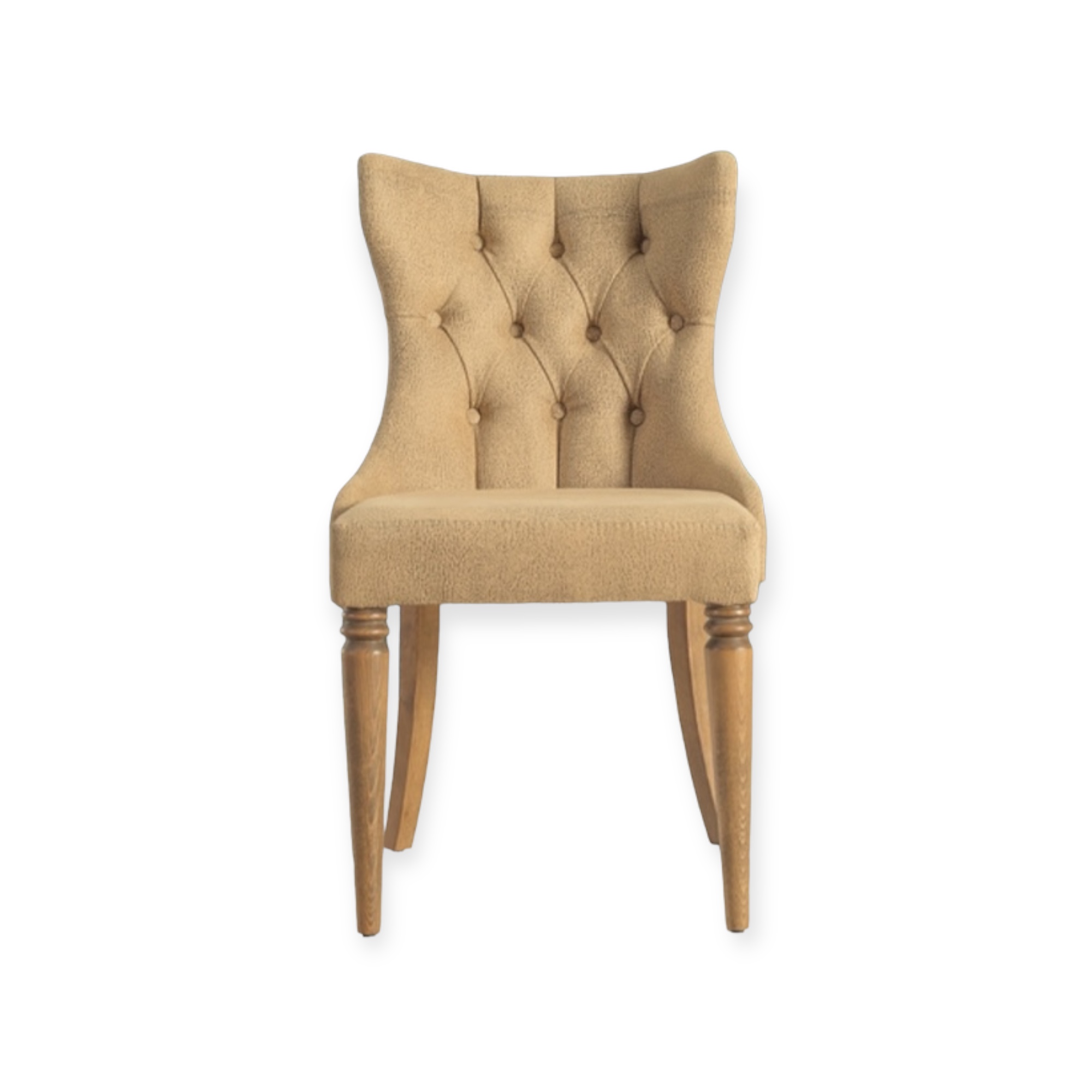 Istuinosa on käsin napitettu ja verhoiltu laadukkaalla beigellä kankaalla.