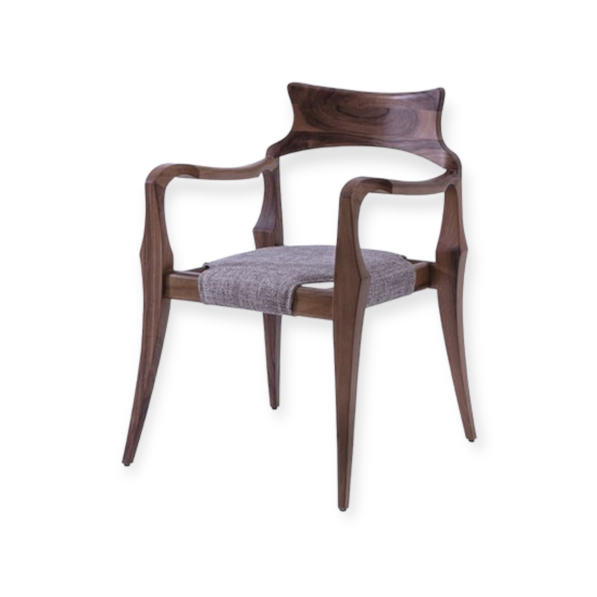 Bugatti on ravintola tuoli, jonka viimeistelee kaunis pähkinäpuu runko ja maanläheinen väritys.