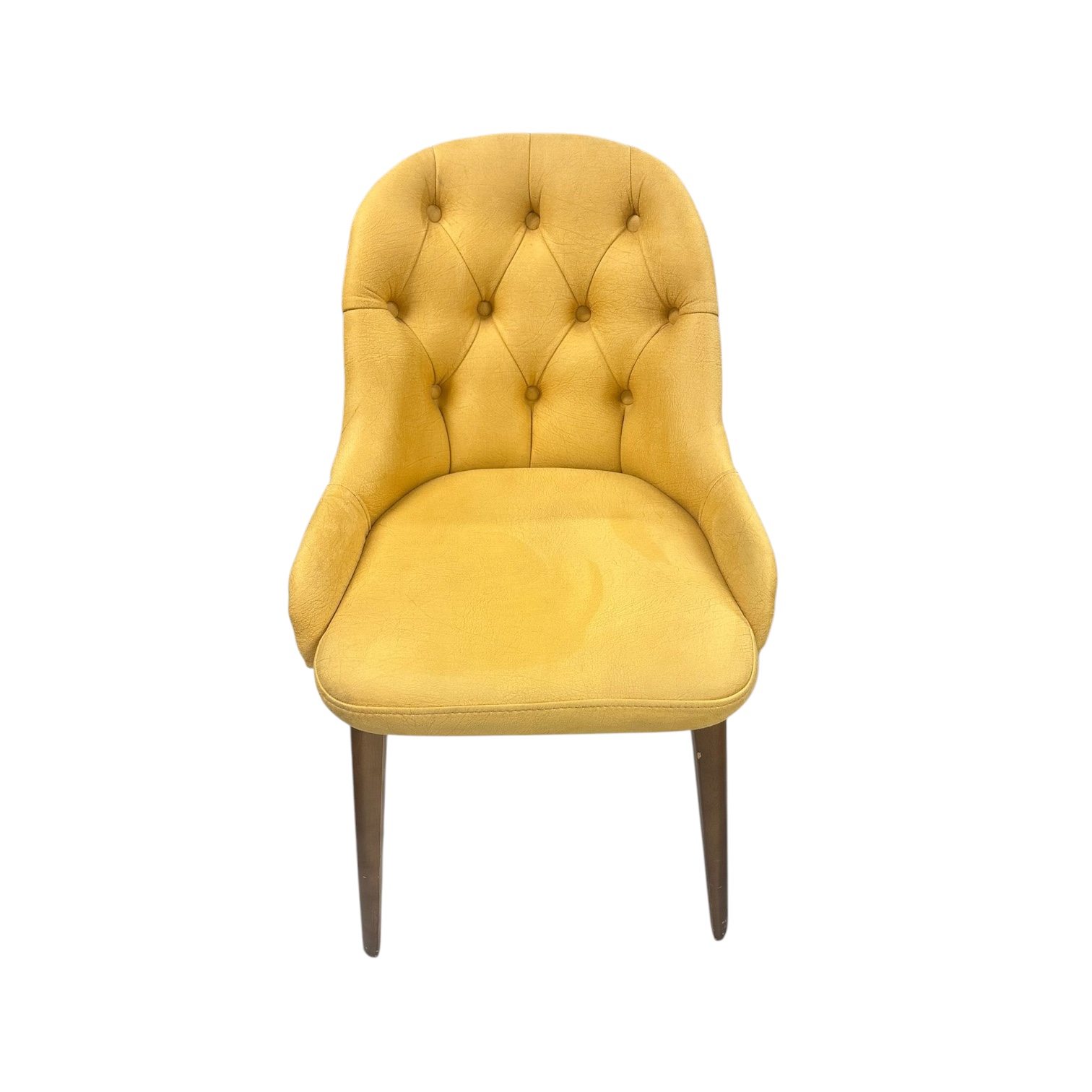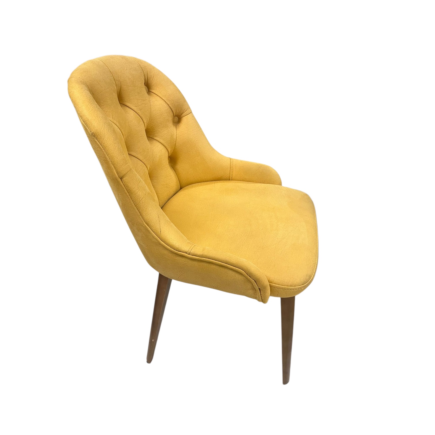 Fulya on ravintola tuoli, jonka viimeistelee kaunis keltainen nupukkinahka verhoilu.