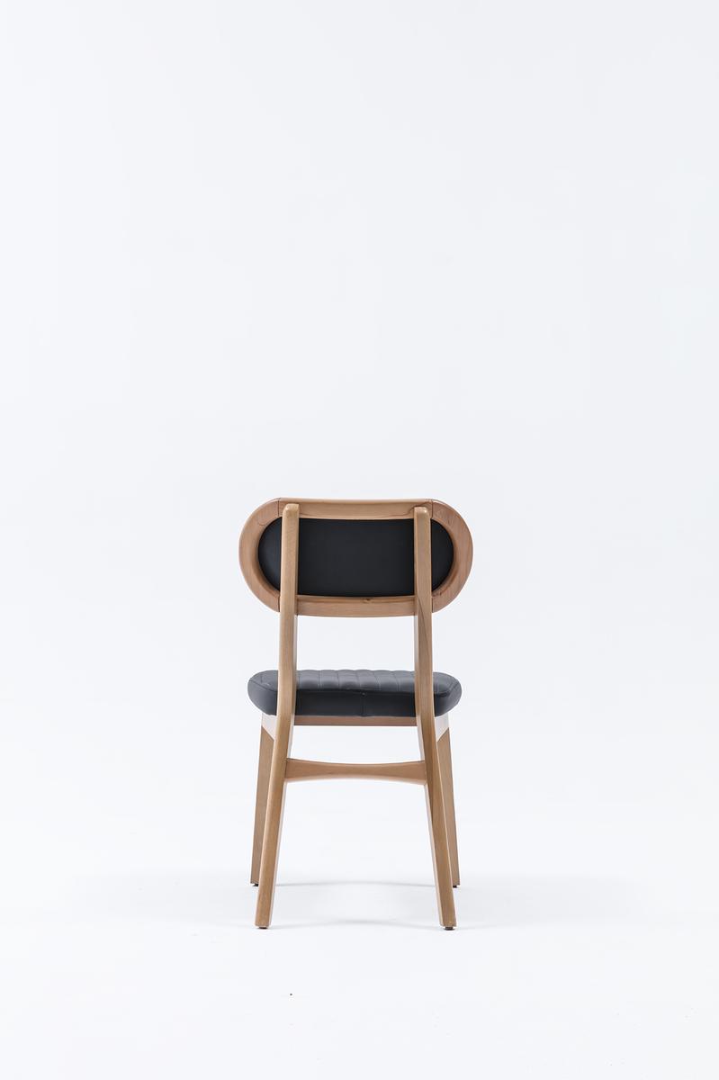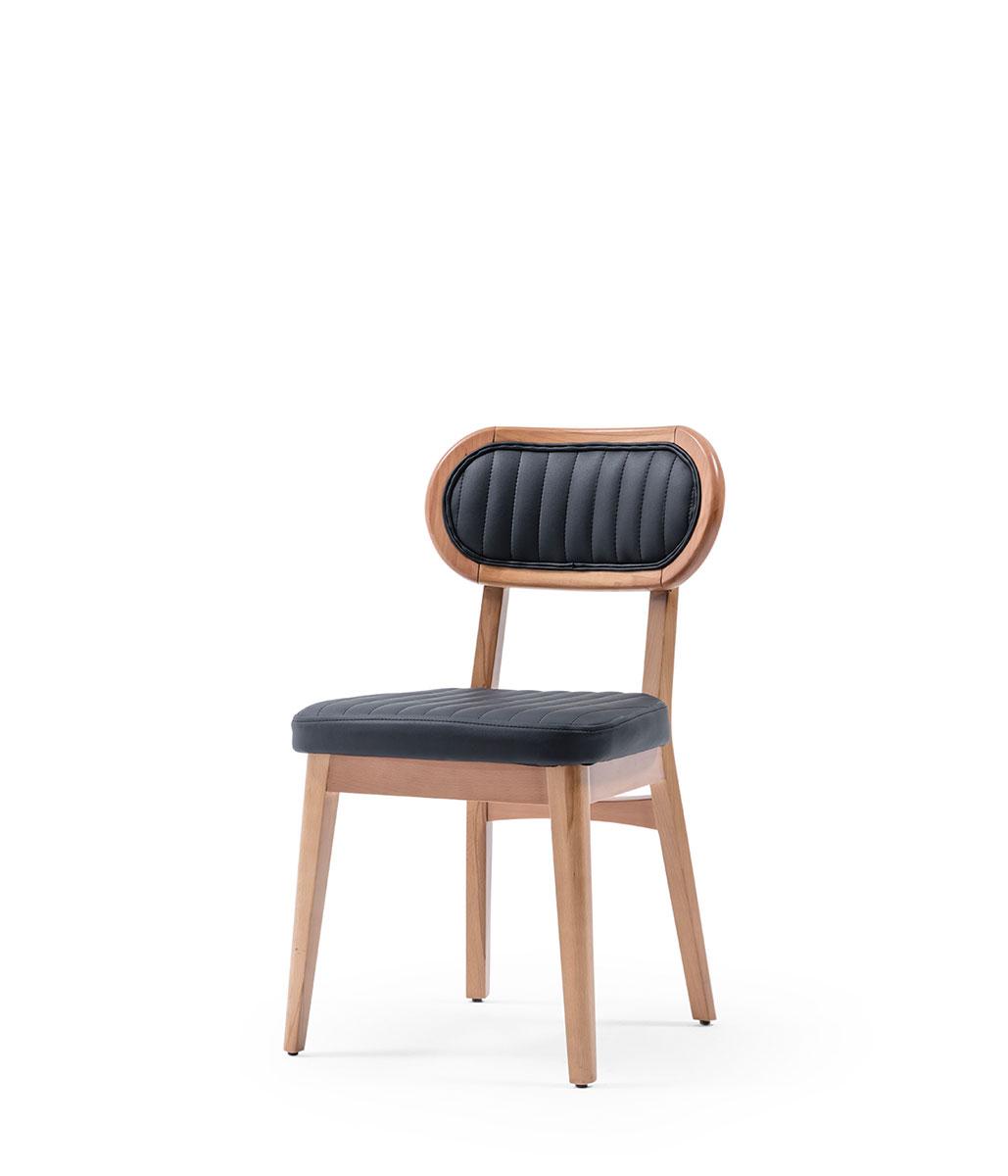 Iglo on ravintola tuoli, jonka viimeistelee kaunis puurunko ja musta keinonahka verhoilu.