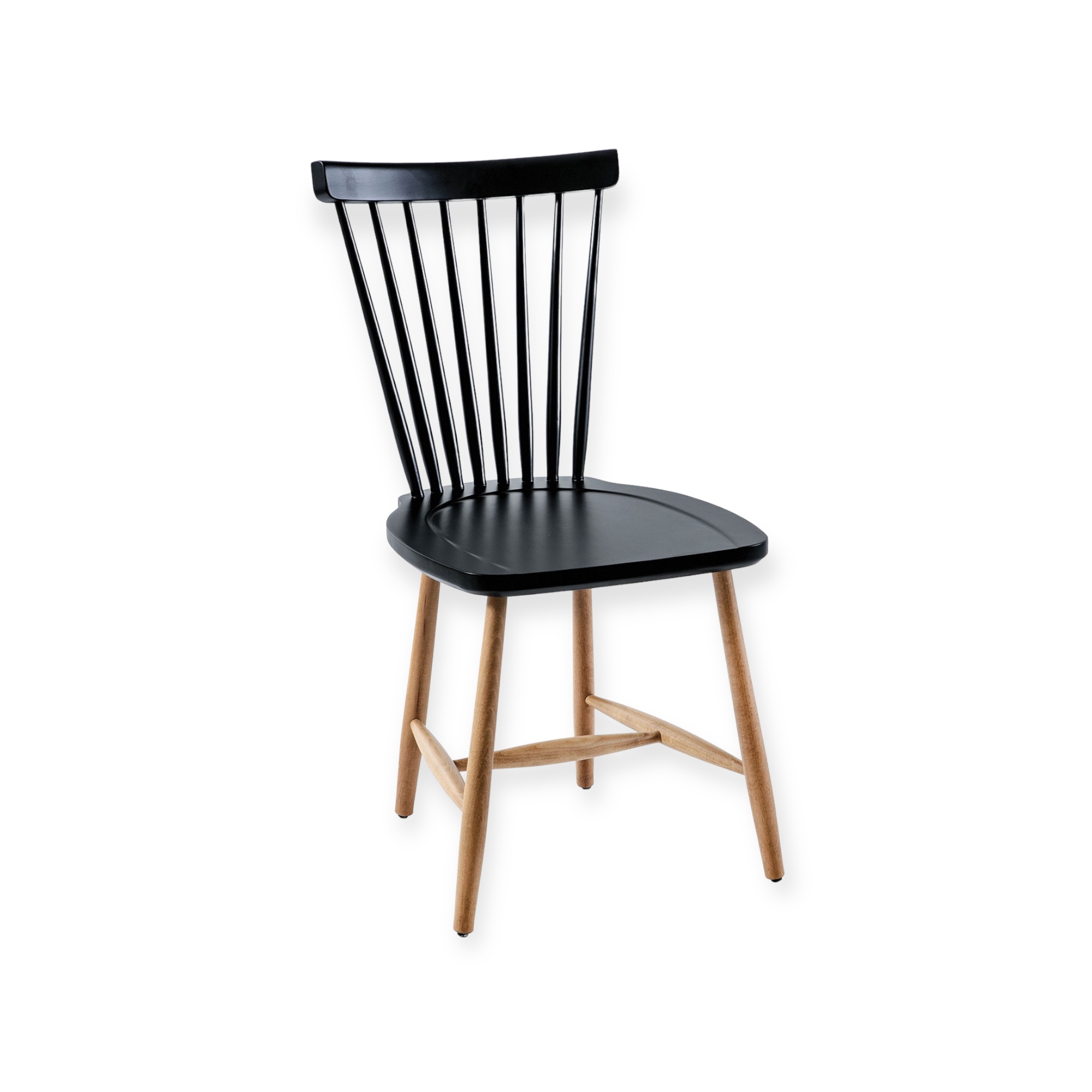 Tuolin jalat ovat puunväriset, ja istuinosa on musta.