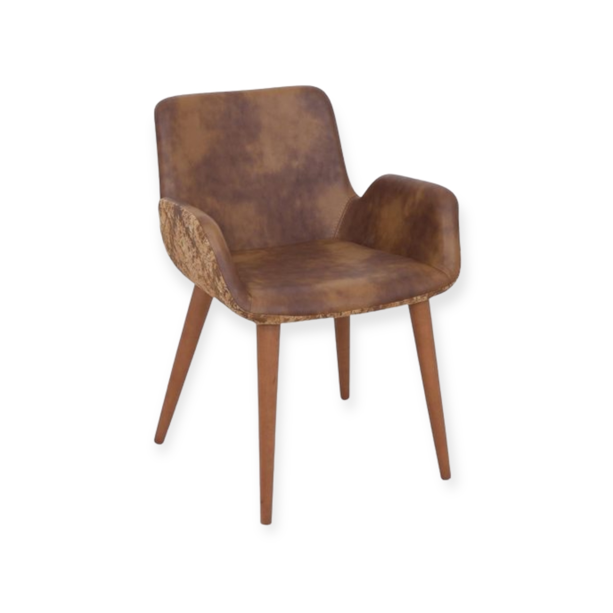 Safari on verhoiltu ruskealla nupukkinahalla, ja tuolin väritys jaloista istuinosaan pitää sisällään monia ruskean sävyjä.