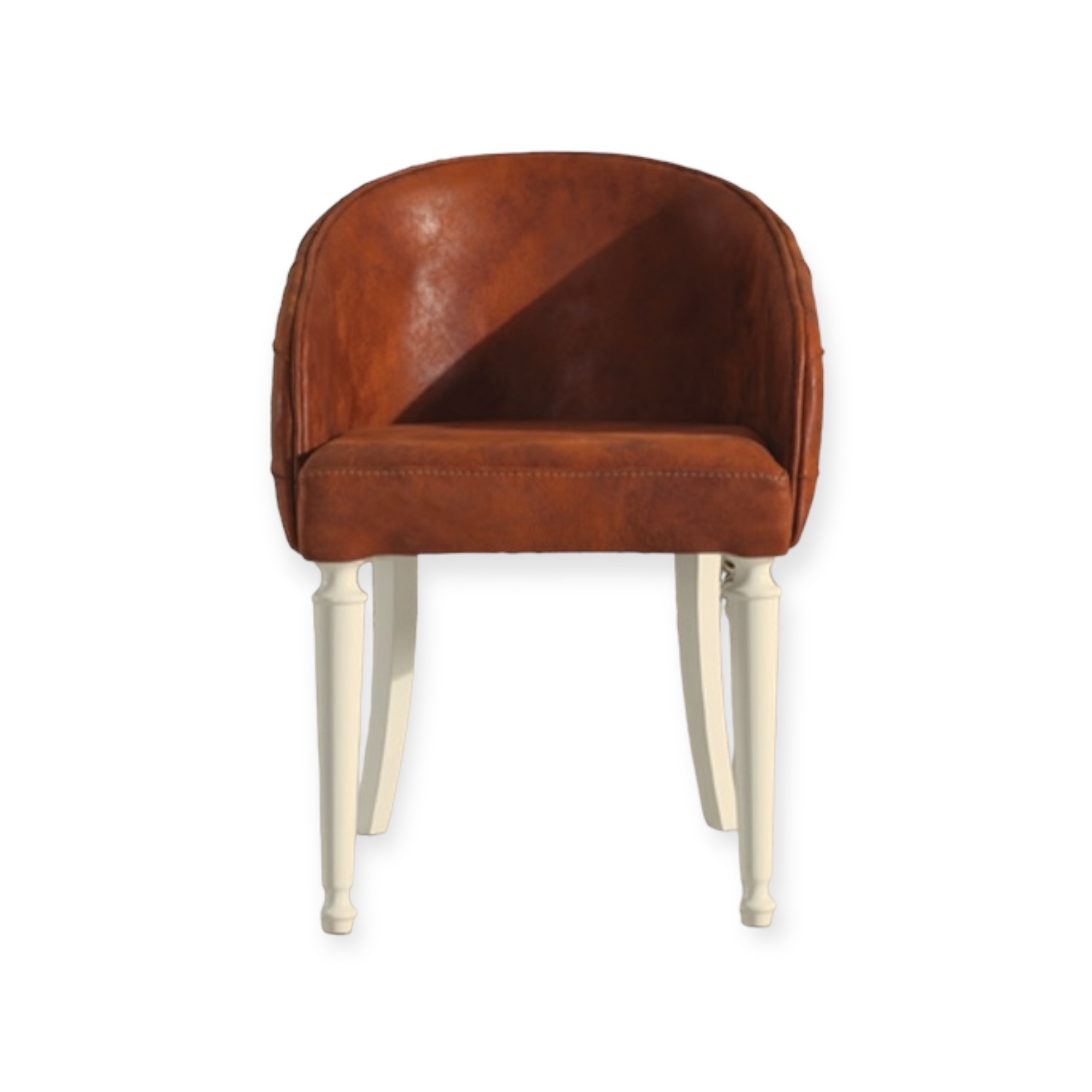 Tuolin kauniisti muotoillut jalat ovat valkoiseksi petsattua pyökkipuuta, mikä takaa kestävyyden.
