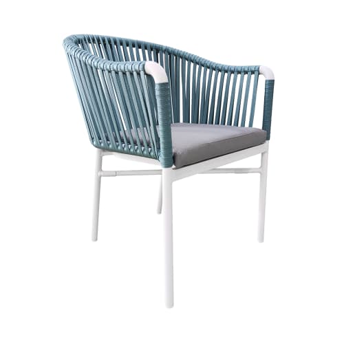 Istuinosa kangasta, selkänoja sinistä polyesteri köyttä, alumiini jalat