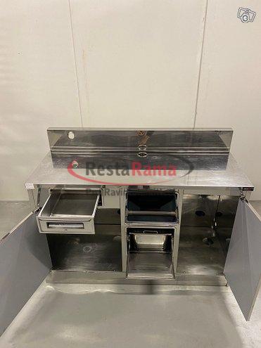 2 kaappia oikealla ja vasemmalla, 1 vedettävä ltk vasemmalla ja 2 roska-allasta
