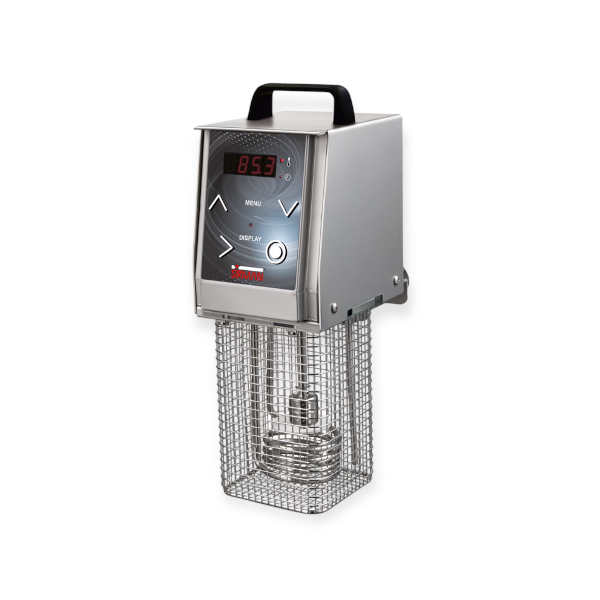 Sirman YO9 -sirkulaattorin mukana tulee GN 1/1 mitoitettu astia. Astian täyttökapasiteetti on 22 litraa. Sirkulaattorissa lämpötilanäyttö ja 25 tallennettavaa ohjelmaa. Sirkulaattorissa on tehokas pumppu, joka kierrättää nestettä tasaisesti. Sen avulla vesihauteen lämpötila pysy tasaisena ja varmistat kypsennyksessä vaadittavan alhaisen lämpötilan pysymisen optimaalisena. Matalan lämpötilan kypsennys säilyttää ruoan maun ja rakenteen tavallista kypsennystä paremmin. Sirkulaattorin lämpötilasensori estää ylikuumenemisen ja ylitäytön.