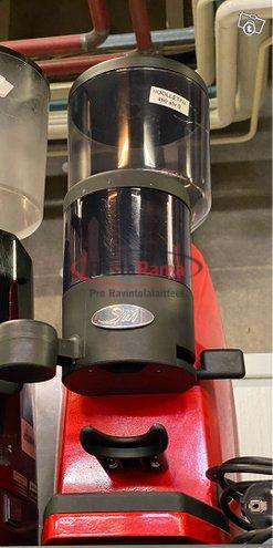 Punaisen värinen sm-kahvimylly, hinta 450€, alv 0