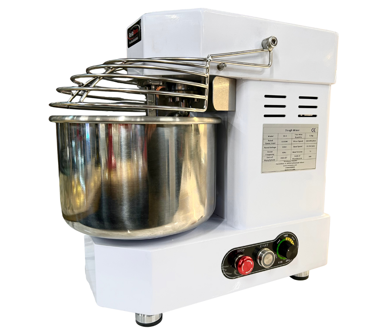 Kompakti ja hiljainen taikinakone. Portaaton nopeuden säätö.
