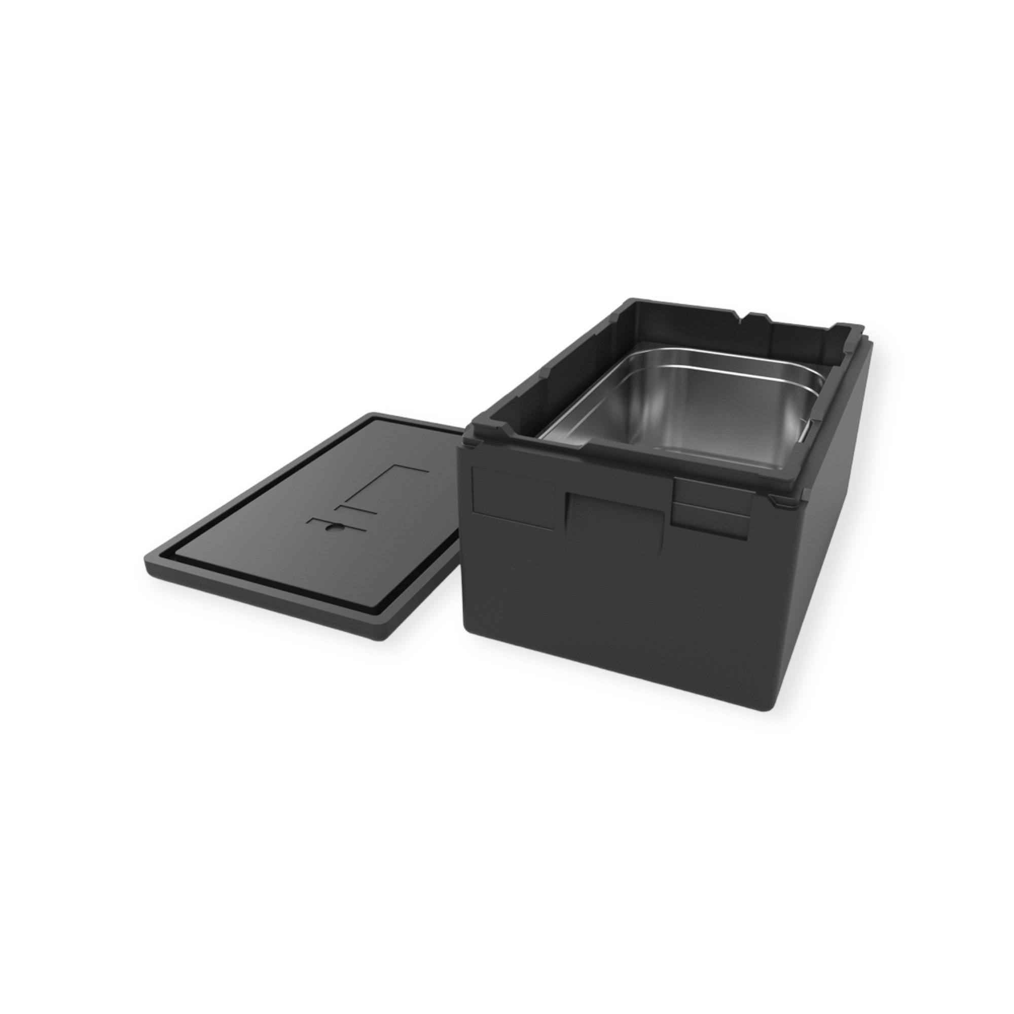 Kevyt polypropyleenistä valmistettu laatikko ruoan kuljetukseen GN-astioissa. Materiaalin paksuus 3 cm. Käyttölämpötila -40°C – +120 °C. Keskimääräinen lämpötilahävikki 2-3°C.