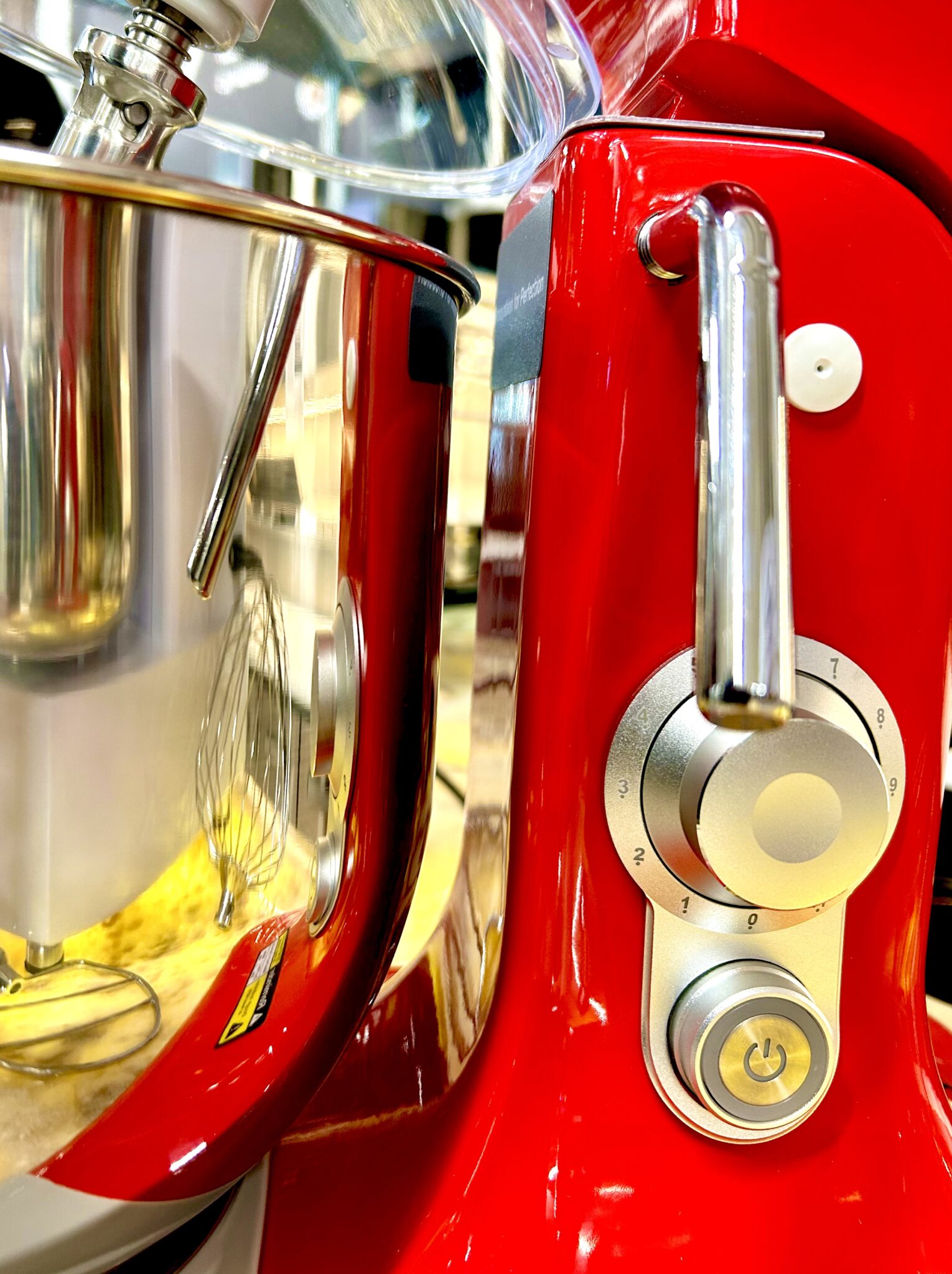 Toimitus sisältää vakiona RST-kulhon, -vispilän, -taikinakoukun ja -sekoitusmelan.